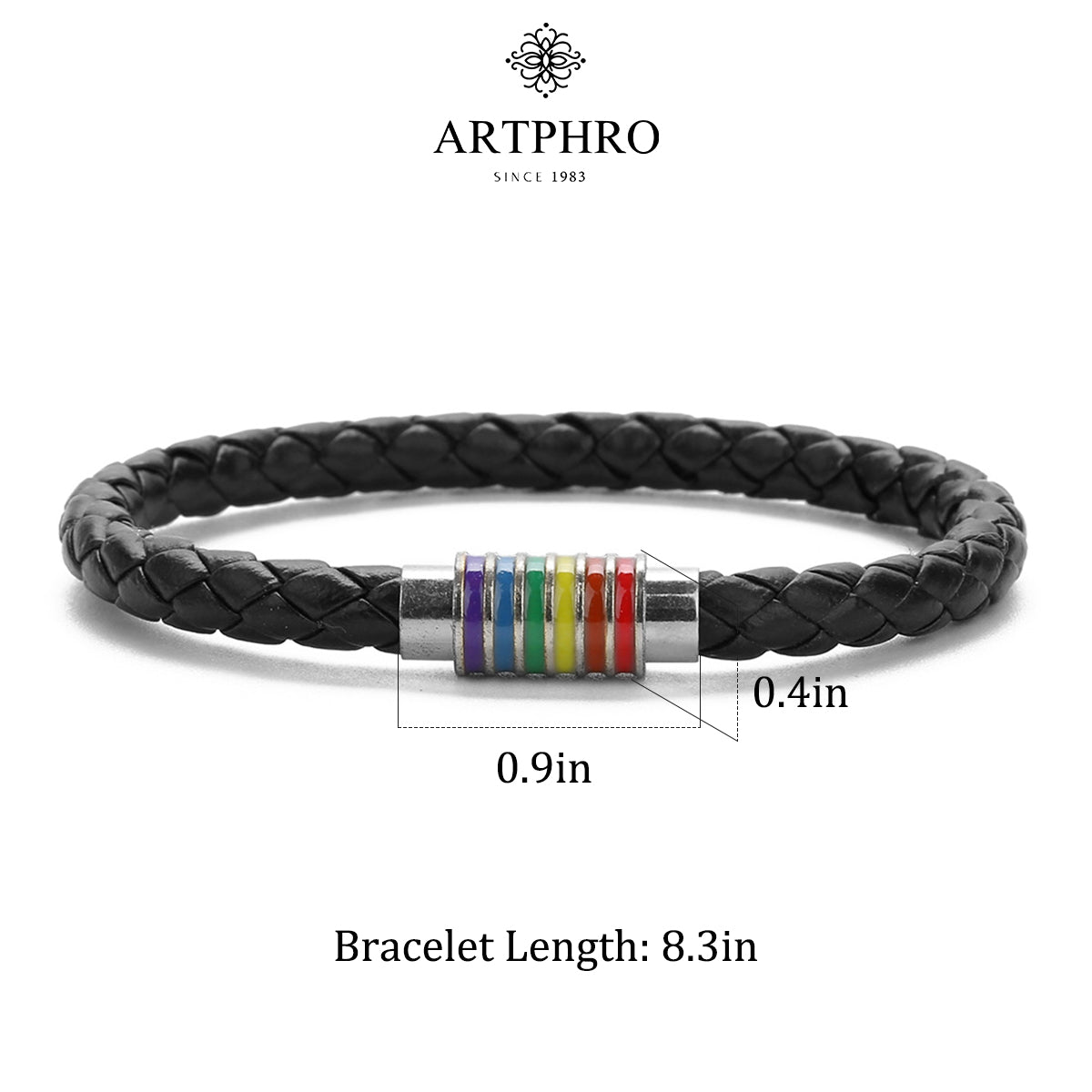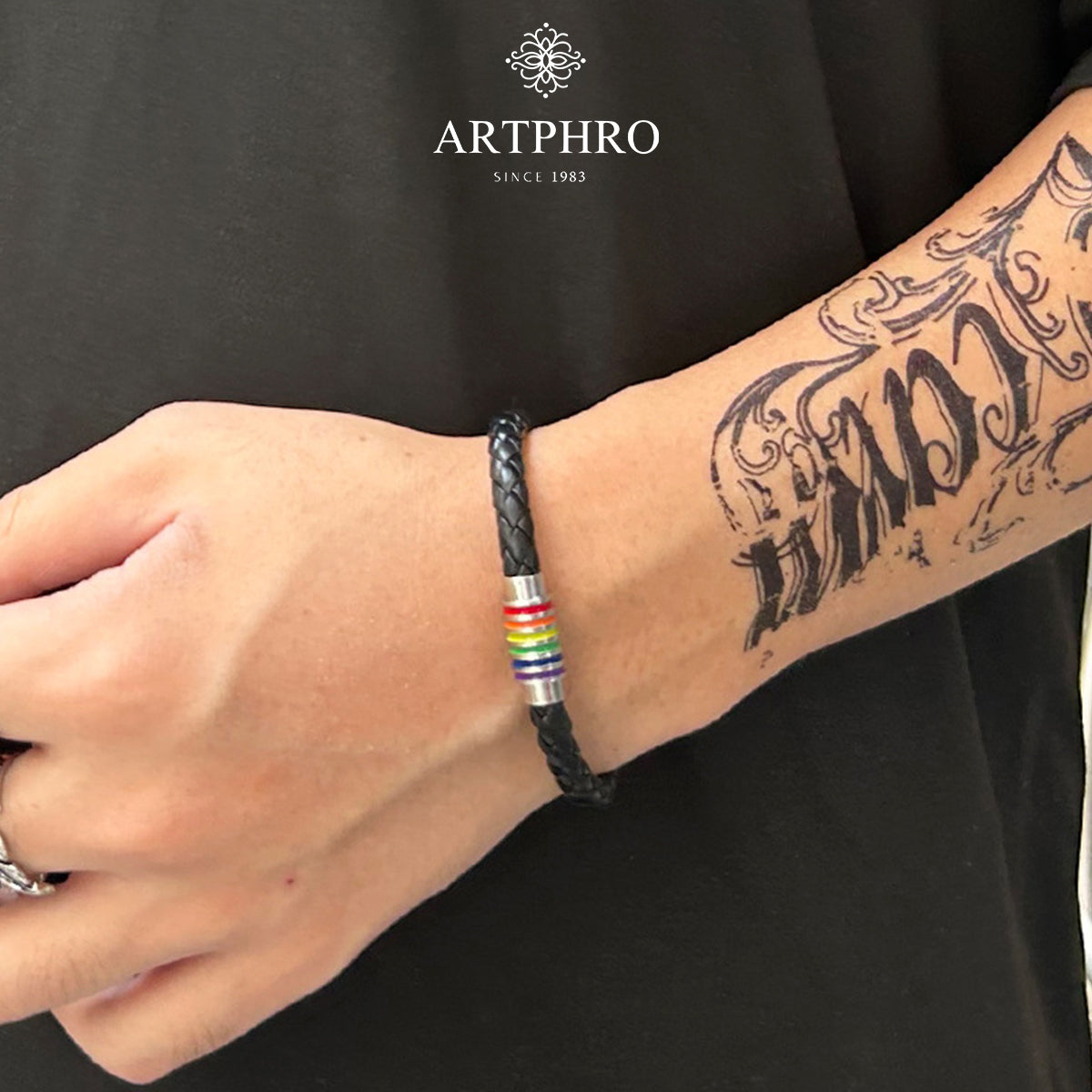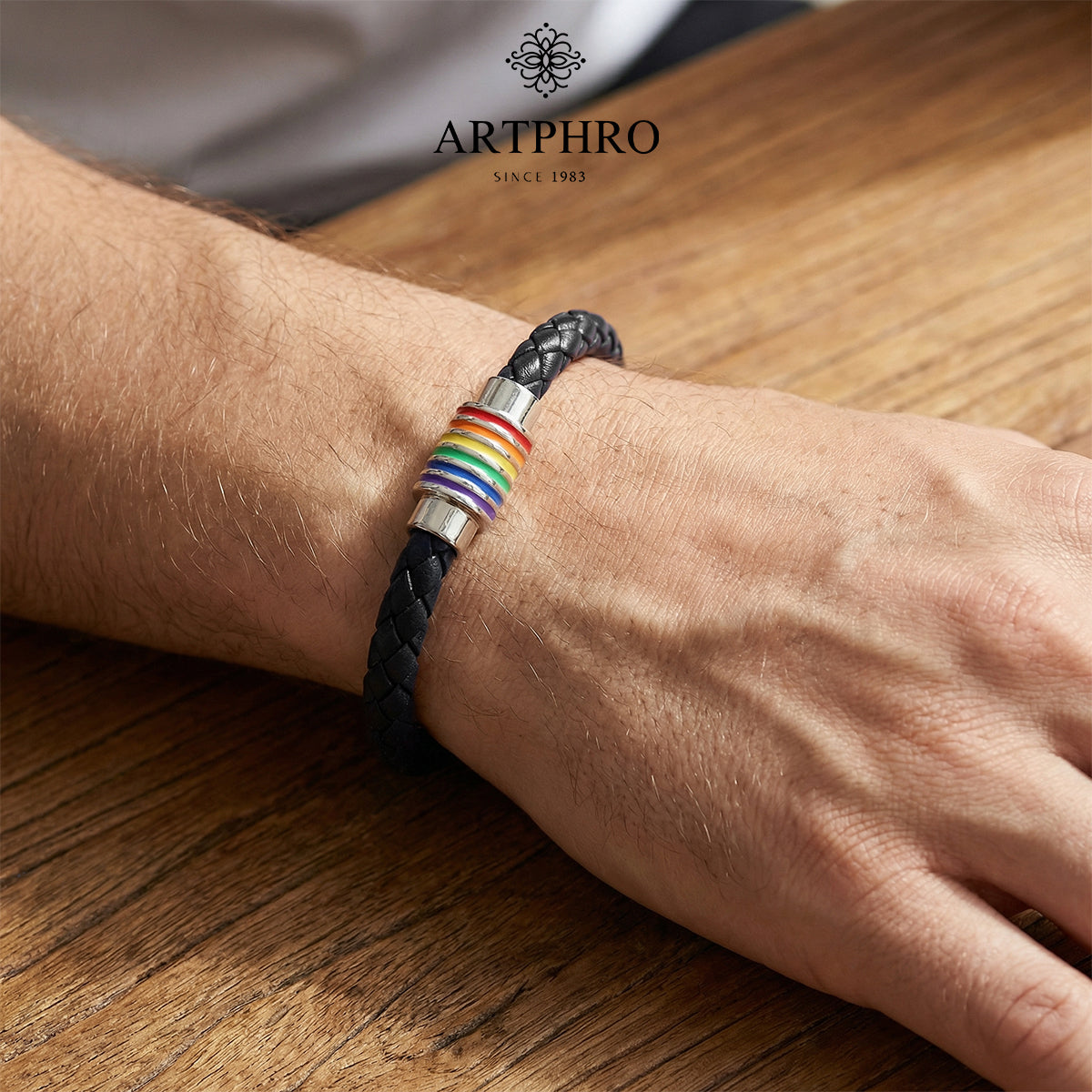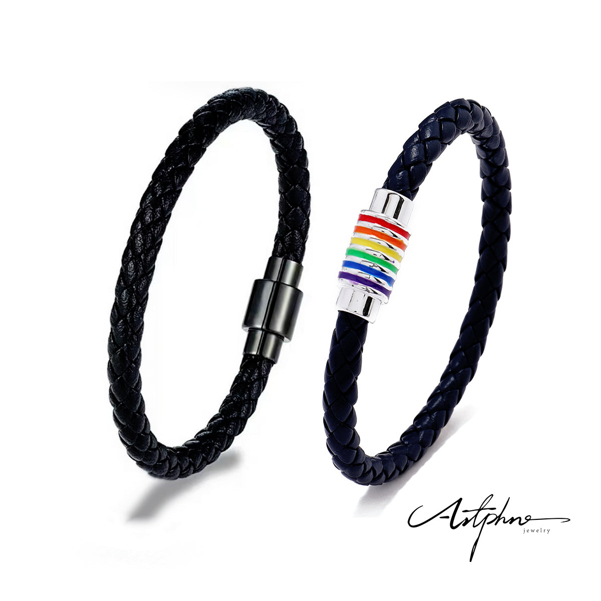 Pulsera de cuero con hebilla magnética arcoíris - Joyería de acero y titanio