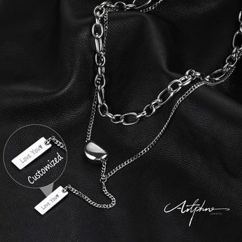 Customized Double Heart Necklace for Men & Women – Engraved Titanium Steel Jewelry